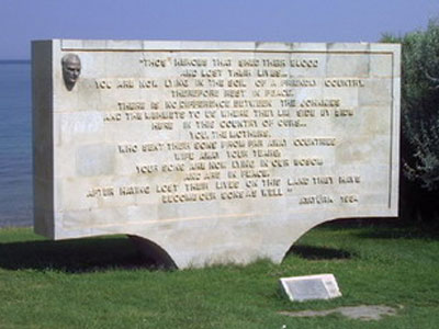 Those heroes that shed their blood and lost their lives. You are now living in the soil of a friendly country therefore rest in peace. There is no difference between the Johnnies and the Mehmets to us where they lie side by side here in this country of ours. You, the mothers, who sent their sons from faraway countries wipe away your tears; your sons are now lying in our bosom and are in peace. After having lost their lives on this land they have become our sons as well.