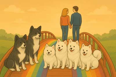 All the animals who had been ill and old are restored to health and vigour. Those who were hurt or maimed are made whole and strong again, just as we remember them in our dreams of days and times gone by. The animals are happy and content, except for one small thing; they each miss someone very special to them, who had to be left behind.