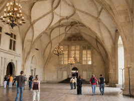 Our visit to Prague commenced with a guided walking tour to, inside, and from the Prague Castle, reportedly the largest castle in the world and the first parts of which were constructed around 870. It is the residence and workplace of the Czech President. The ceiling of Vladislav Hall in the Prague Castle is certainly impressive.