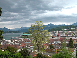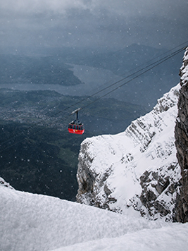 While in Lucerne we took the opportunity to venture up Mount Pilatus. We took the aerial cable car up as the cogwheel railway—the steepest rack railway in the world—was closed due to the weather. We were a little disappointed to not be able to ride the railway but the cable car ride itself was unforgettable, rising steadily over ridgelines with heart-stopping drop-offs plunging away beneath us. Below, clouds drifted through the valleys; above, the mountains disappeared into snow.