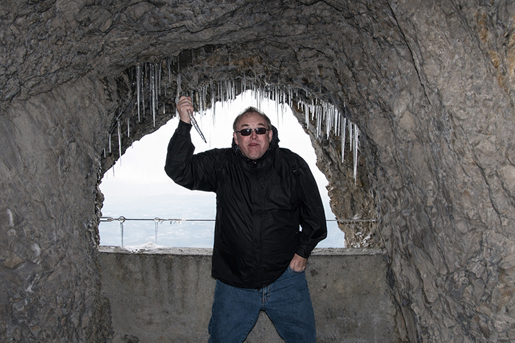 Memory: The cable car ride up to Mt Pilatus—spotting the tiny Klimsenhorn Chapel sitting alone on a distant ridgeline—then wandering the icy walkway and caves, with nothing more than a simple double wire-rope barrier between us and some very big drops.