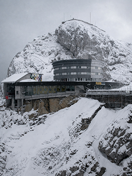 At the summit, we lingered over the expansive views as snow fell softly around us, braving the icy walkways, tunnels and arches—separated from sheer drops of hundreds of metres by little more than a couple of wire ropes in some places.