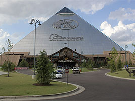 It was in Memphis that we came across our second parade, we saw cameras and barricades on Beale Street (a special street) and asked one of the camera men what was going on. We then jumped on a bus to do a circuit of the central area of Memphis. A couple in town for the Football game asked us if we were going to the Bass Pro Shop as they always did when they were in town. They told us it was in the former Memphis Pyramid. We knew nothing about it but when it came into view we had to stop and have a wander. Wow what a shop, 535,000 square feet. Inside there are live fish in ponds, live alligators in ponds, 100-foot-high cypress trees, a pistol range, sporting goods of every kind and much much more.