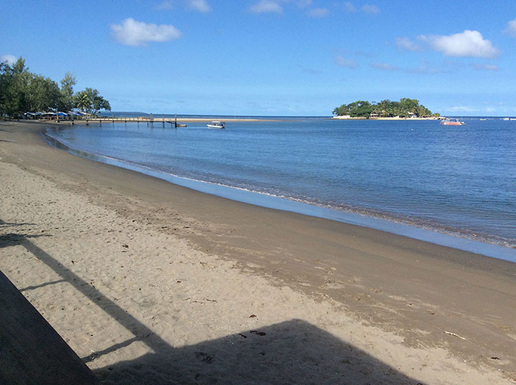 The Beach @ Our Accommodation – Beach Side Bar to Left, Hideaway Island to Right